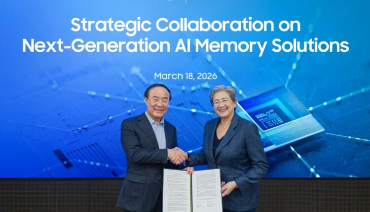 Crédito: SamsungSamsung anunció la firma de un Memorando de Entendimiento (MOU) con AMD para ampliar la colaboración entre ambas compañías alrededor del suministro de memoria para cargas de trabajo de Inteligencia Artificial (IA). El acuerdo permitirá a AMD mantener el suministro de memoria para sus aceleradores de IA,en medio de la escasez en el mercado de estos componentes.