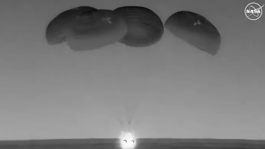 Cuatro minutos antes del aterrizaje, los paracaídas se desplegaron a unos 18.000 pies de altitud mientras Dragon se movía aproximadamente a 580 kilómetros por hora. Menos de un minuto después, los paracaídas principales se desplegarán a unos 6.000 pies de altitud mientras la nave espacial se mueve aproximadamente a 191 kilómetros por hora.